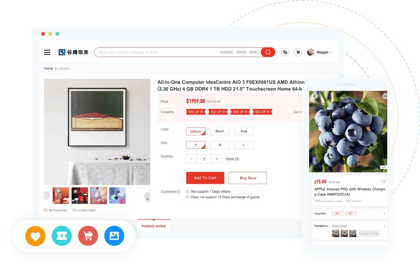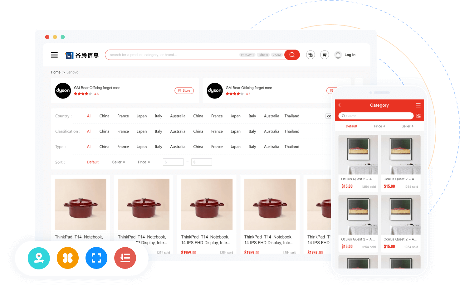 結合各大主流跨境電商平臺的界面特點,注入GT獨創(chuàng)設計思維,打造出符合國際化標準的跨境電商展示界面